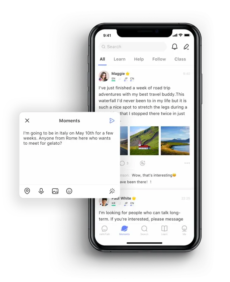 What if you could connect with all native speakers of a language at once? Moments posts allow you to do just this.